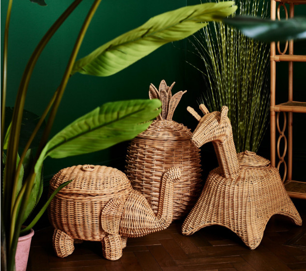 Rattan Elephant Landry/ Toy Basket with Lid