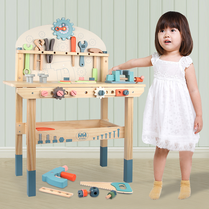Hot Sell Wooden Workbench Toy, Wood Tool Stand Set with Assembly Tools for Children